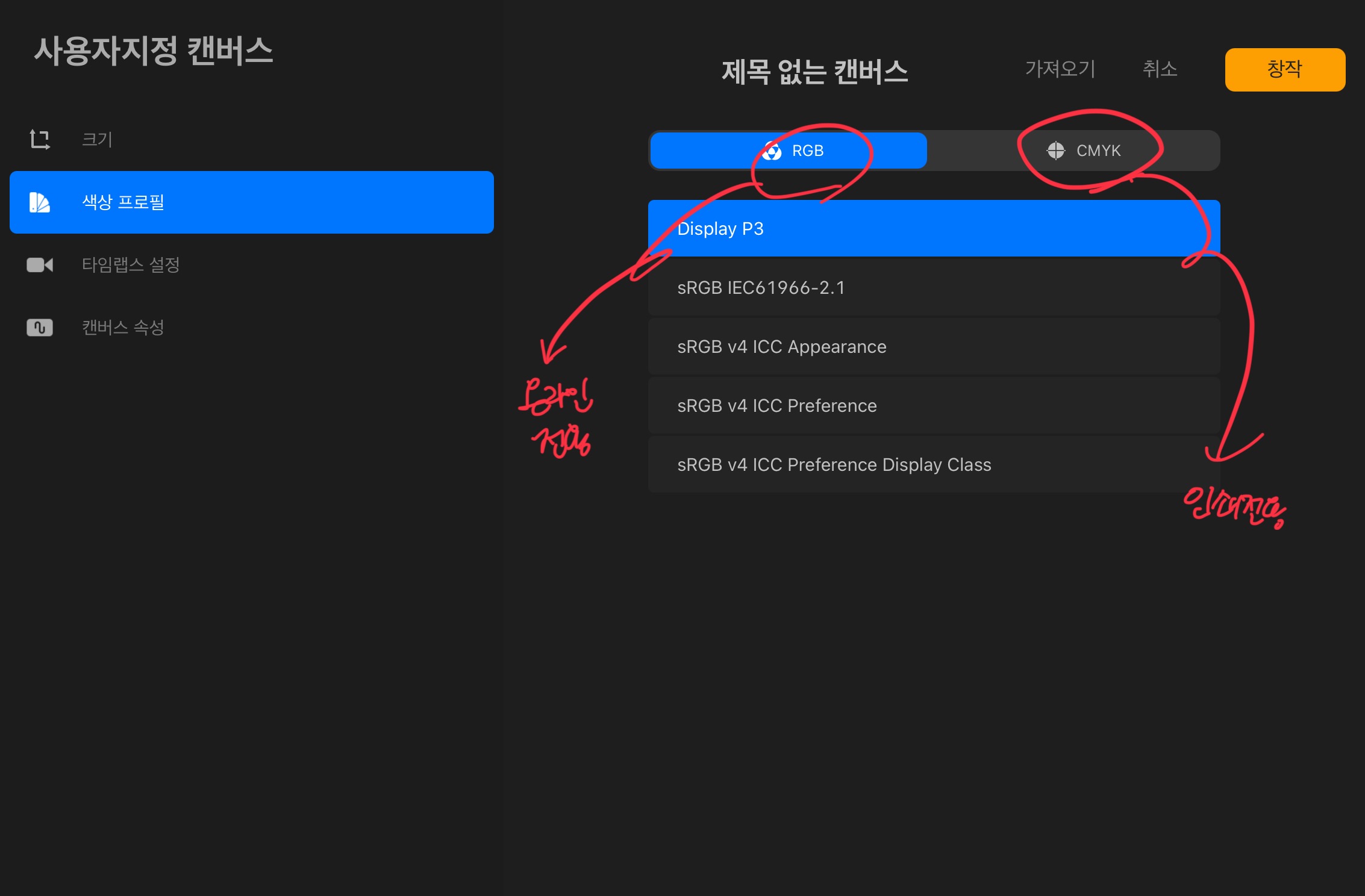 맨 처음 새 캔버스를 생성할 때 해상도와 비율을 고려하여